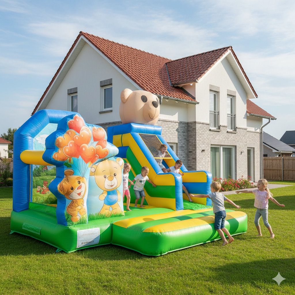 🐻 Hüpfburg Kuschelbär – Die beliebte Hüpfburg mit Rutsche für Kinderfeste